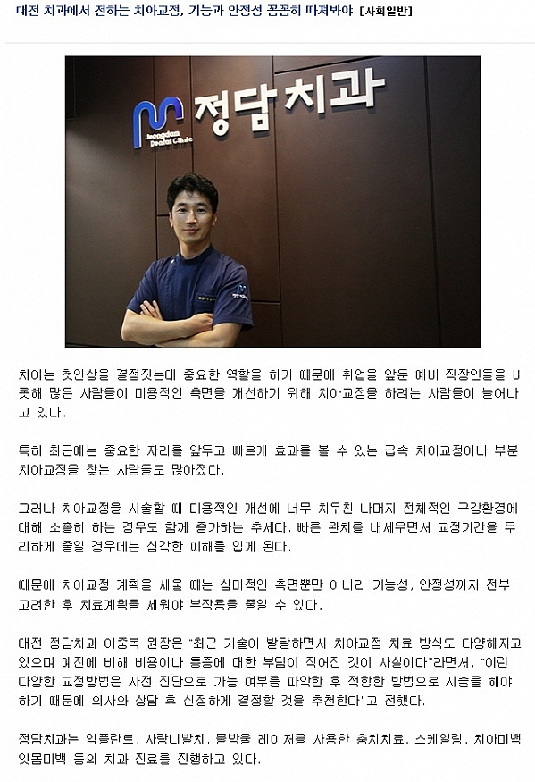 ´ëÀü Ä¡°ú¿¡¼ ÀüÇÏ´Â Ä¡¾Æ±³Á¤, ±â´É°ú ¾ÈÁ¤¼º ²Ä²ÄÈ÷ µûÁ®ºÁ¾ß